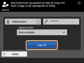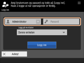 Administratorrettigheter kreves for de følgende innstillingene. Hvis du ønsker å konfigurere innstillingene, trykker du på <Logg inn>.