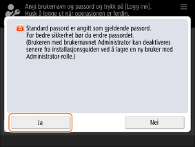 Du kan trykke på <Yes> for å endre standardpassordet.