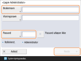 Tast inn <Brukernavn> og <Passord>, og trykk på <Neste>.
