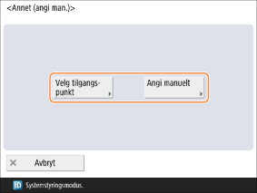 Trykk på <Velg tilgangspunkt> eller <Angi manuelt>.