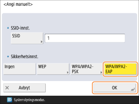 Velg <WPA/WPA2EAP> og trykk på <OK>.
