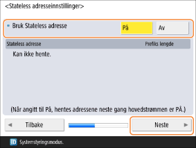 Konfigurer <Bruk Stateless adresse> for IPv6 og trykk på <Next>.