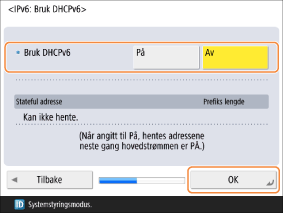 Konfigurer <Bruk DHCPv6> og trykk på <OK>.