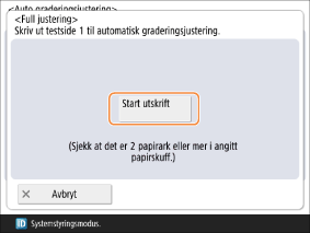 Trykk på <Start utskrift> for å skrive ut testside 1.