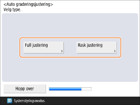 Hvis du ikke vil utføre justering, trykker du på <Hopp over> og fortsetter til