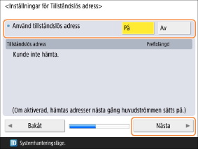 När den är inställd på <På> hämtas en tillståndsstyrd adress automatiskt nästa gång strömmen slås PÅ.