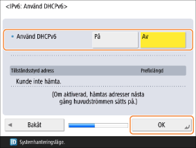 Konfigurera <Använd DHCPv6> och tryck på <OK>.