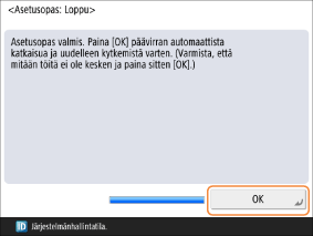 Kun painat <OK>:ta, laite käynnistyy uudelleen.