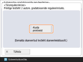 Vajutage testlehe 2 printimiseks nuppu <Alusta printimist>. Eemaldage testleht 1 dokumendiklaasilt, kuna seda järgmistes sammudes ei kasutata.
