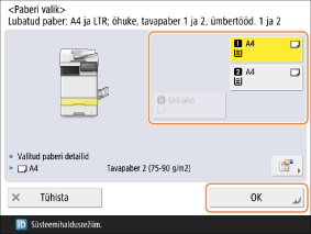 Valige kasutatav paber ja vajutage <OK>.