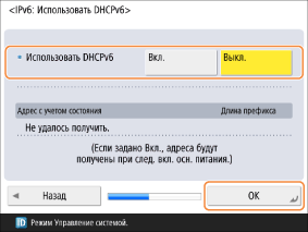 Задайте <Использовать DHCPv6> и нажмите <OK>.