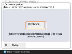 Нажмите <Пуск печати>, чтобы распечатать тестовую страницу 2. Снимите тестовую страницу 1 со стекла экспонирования, так как она не используется в последующих шагах.