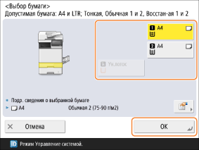 Выберите бумагу для использования и нажмите <OK>.