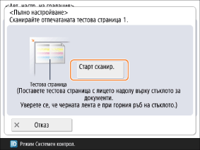 Поставете тестова страница 1 върху стъклото на скенера и натиснете <Старт сканир.>.