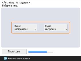 Направете настройка за отпечатване на изображения. Изберете <Пълно настройване>, за да направите пълна настройка, или <Бърза настройка>, за да извършите бърза настройка.