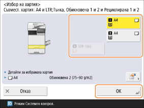 Изберете хартията, която ще използвате, и натиснете <OK>.