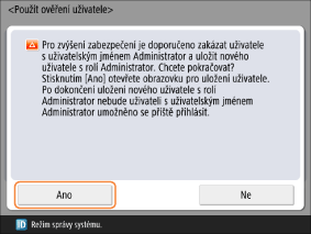 Stisknutím tlačítka <Yes> můžete zaregistrovat nový účet administrátora.