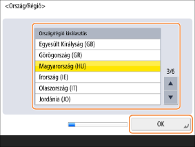 Válassza ki az országot/régiót, majd nyomja meg az <OK> gombot.