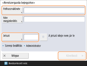 Adja meg a <Felhasználónév> és <Jelszó> elemeket, és nyomja meg a <Következő> gombot.