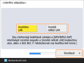 Ha a <Vezeték nélküli LAN> lehetőséget választotta,folytassa