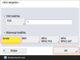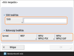 Adja meg a vezeték nélküli LAN útválasztó SSID-jét, amelyhez csatlakozni kíván, és válassza ki a biztonsági beállításokat.