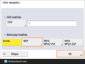 Válassza ki a <WEP> lehetőséget, és nyomja meg az <OK> gombot.