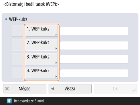 Válasszon egyet a <1. WEP-kulcs> - <4. WEP-kulcs> lehetőségek közül, és adja meg a WEP-kulcsot.