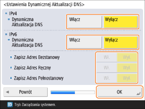 <Dynamiczna Aktualizacja DNS>: ustaw tę opcję na <Włącz>, aby przeprowadzać automatyczne aktualizacje, gdy powiązanie między nazwą hosta a adresem IP ulegnie zmianie w środowisku DHCP itp.