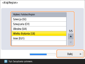Wybierz kraj/region i naciśnij <Next>.