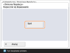 Przeprowadź regulację ustawień drukowania obrazów. Wybierz <Pełna Regulacja>, aby przeprowadzić pełną regulację, lub <Skrócona Regulacja>, aby przeprowadzić skróconą regulację.