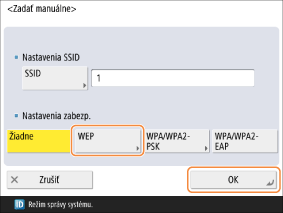 Zvoľte <WEP> a stlačte <OK>.
