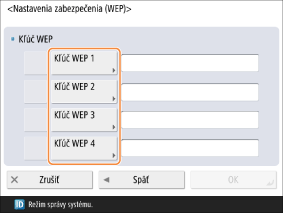 Zvoľte niektorú z možností <Kľúč WEP 1> až <Kľúč WEP 4> a zadajte kľúč WEP.