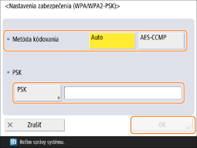 Zvoľte <Metóda kódovania>, zadajte kľúč do <PSK> a stlačte <OK>.