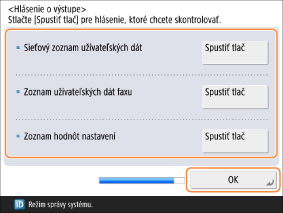 Stlačte <Spustiť tlač> na kontrolu hlásenia a po dokončení tlače stlačte tlačidlo <OK>.