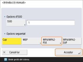 Seleccioneu <WPA/WPA2PSK> i premeu <Acceptar>.
