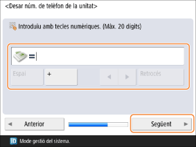 Deseu el número de telèfon de la unitat (el número de fax del remitent).
