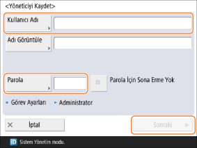 <Kullanıcı Adı> ve <Parola> girin ve <Sonraki> düğmesine basın.