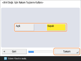 <Açık> veya <Kapalı> seçeneğini belirleyin ve Tamam seçeneğine basın.