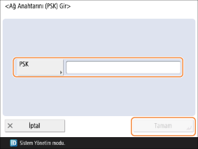 Ağ anahtarını girin ve <Tamam> düğmesine basın.