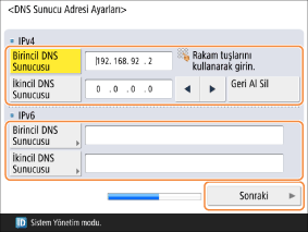 DNS sunucusunun IP adresini girin ve <Next> düğmesine basın.