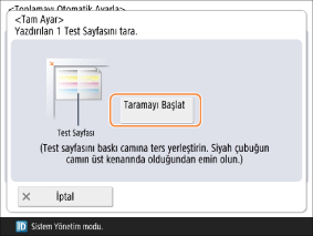 Baskı levhası camına Test Sayfası 1’i yerleştirin ve <Taramayı Başlat> düğmesine basın.