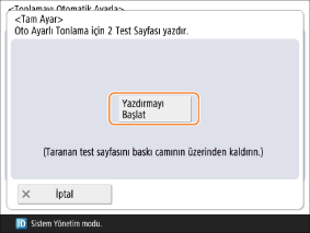 Baskı levhası camına Test Sayfası 2’yi yerleştirin ve <Taramayı Başlat> düğmesine basın.