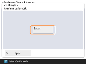 Resimleri yazdırmak için ayarlamaları gerçekleştirin. Tam ayarlama için <Tam Ayar> öğesini veya hızlı ayarlama için <Hızlı Ayar> öğesini seçin.