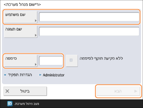 <ללא פקיעת תוקף לסיסמה>: אם בחרת באפשרות הזו, לא צריך לשנות את הסיסמה. הגדר את תקופת פקיעת התוקף של הסיסמה בחלק <הגדרות תקופת תוקף> שבחלק <הגדרות סיסמה> לאחר שסיימת לבצע את ההוראות שבמדריך ההתקנה.