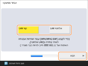 בחר את שיטת ההתחברות לרשת ולחץ על <Next>.
