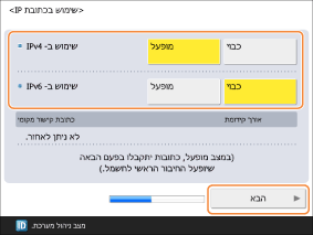 בחר אם להשתמש ב-IPv4 או ב-IPv6, בהתאם לסביבה שלך, ולאחר מכן לחץ על <Next>.