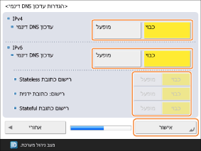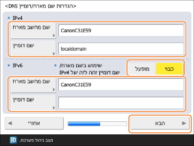 <שימוש בשם מארח/שם דומיין זהה לזה של IPv4>: הגדר זאת בתור <מופעל> כדי להחיל את אותן הגדרות כמו אלה של IPv4 עד IPv6.