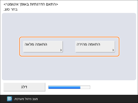 יש לבצע התאמות להדפסת תמונות. בחר <התאמה מלאה> כדי לבצע התאמה מלאה או <התאמה מהירה> כדי לבצע התאמה מהירה.