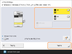 בחר בנייר בו ייעשה שימוש ולחץ על <אישור>.
