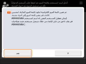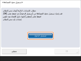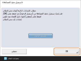 إذا ضغطت على <لا>، عندئذ تُعرض شاشة <تسجيل دخول المصادقة> مرة أخرى. اضغط على <OK>، وقم بتهيئة الإعدادات في
